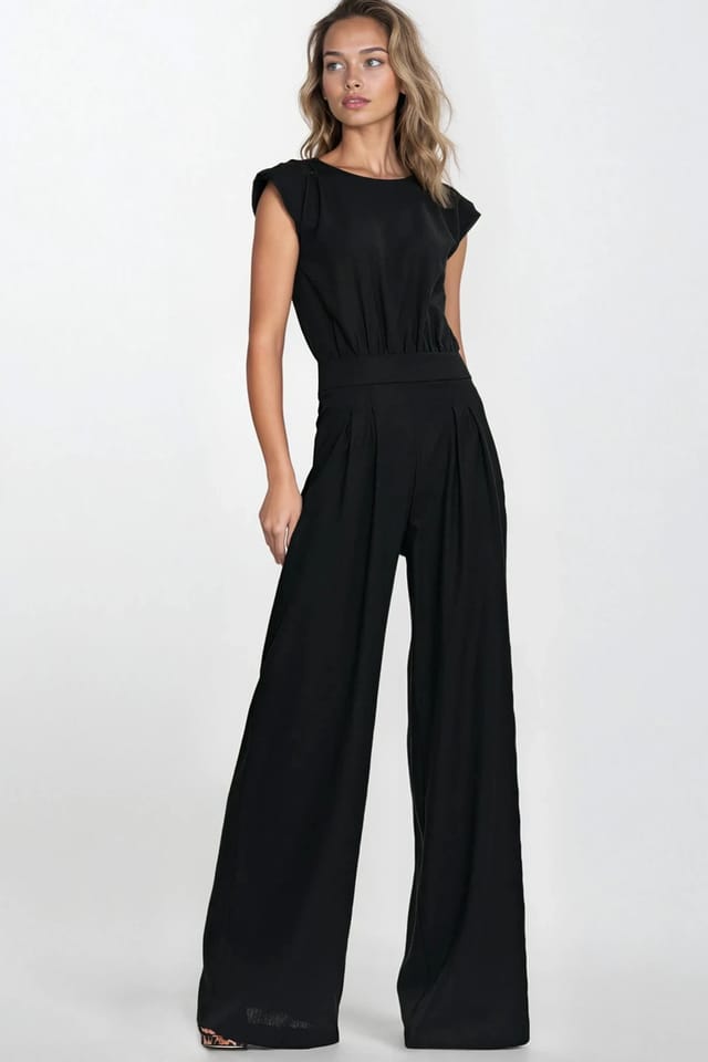 Kombinezon z rayonu z nogawkami palazzo - czarny - KM42 kolor czarny, rozmiar 42