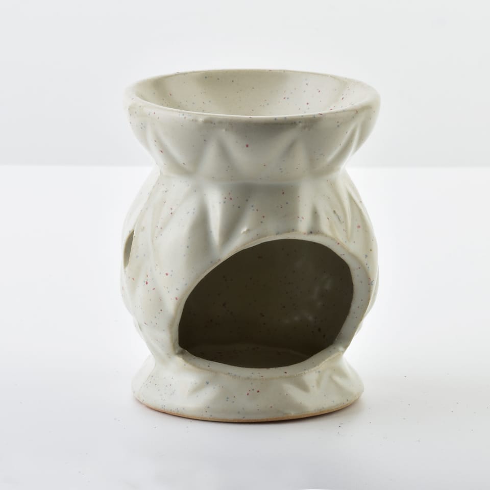 Ceramiczny kominek na olejek zapachowy. Służy do aplikacji olejków i wosków zapachowych. Odpowiednia wysokość kominka oraz pojemna miseczka sprawiają, że kominek idealnie nadaje się do wosków zapachowych oraz zapewnia komfort w korzystaniu z olejków zapachowych. Na górze kominka należy umieścić wosk lub olejek zapachowy, a w dolnej części należy umieścić małą świeczkę typu tealight w celu podgrzania i uzyskania zapachu. W miseczce można roztapiać cały wosk lub jego fragment, nie należy dodawać do wosku wody. WYMIARY: ŚREDNICA 6,5cm WYSOKOŚĆ 8cm brak opakowania jednostkowego opakowanie wewnętrzene-12szt