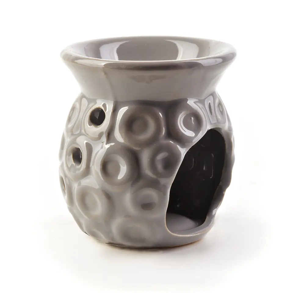 Ceramiczny kominek na olejek zapachowy. Służy do aplikacji olejków i wosków zapachowych. Odpowiednia wysokość kominka oraz pojemna miseczka sprawiają, że kominek idealnie nadaje się do wosków zapachowych oraz zapewnia komfort w korzystaniu z olejków zapachowych. Na górze kominka należy umieścić wosk lub olejek zapachowy, a w dolnej części należy umieścić małą świeczkę typu tealight w celu podgrzania i uzyskania zapachu. W miseczce można roztapiać cały wosk lub jego fragment, nie należy dodawać do wosku wody. wymiar: 7x5xh8cm waga: 162g brak opakowania jednostkowego inner 12szt karton zbiorczy 120szt