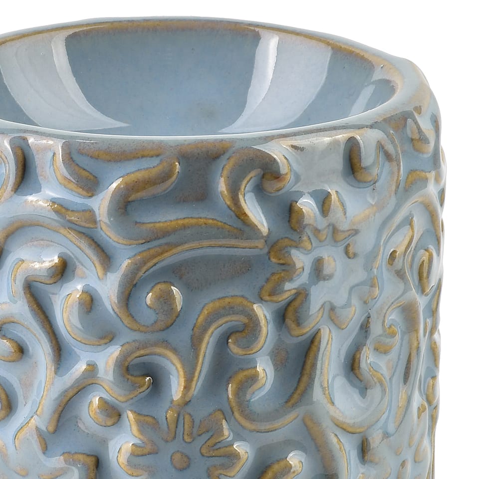 Mały kominek ceramiczny z fakturą w kwiaty o wymiarach 7x7x7,5 cm to doskonały wybór dla osób ceniących zarówno estetykę, jak i funkcjonalność w domowym wnętrzu.Oto kilka istotnych cech takiego produktu:Opis:Materiał: Wysokiej jakości ceramika, zapewniająca trwałość i odporność na wysokie temperatury.Wzornictwo: Subtelna faktura w kwiaty dodaje uroku i pasuje do różnych stylów wnętrz . od klasycznego po rustykalny czy romantyczny.Wymiary:Szerokość: 7 cmGłębokość: 7 cm Wysokość: 7,5 cm Funkcjonalność:Idealny do podgrzewania olejków eterycznych, wosków zapachowych czy świec tealight. Kompaktowy rozmiar sprawia, że zmieści się na półce, stoliku czy blacie w łazience. Gdzie pasuje:Salon: Dodaje nastrojowego światła i zapachu.Łazienka: Tworzy relaksującą atmosferę podczas kąpieli.Sypialnia: Idealny do aromaterapii przed snem.Jeśli szukasz czegoś subtelnego, ale efektownego, taki kominek to idealna dekoracja i narzędzie do stworzenia przytulnej atmosfery w każdym pomieszczeniu. wymiar: 7x7x7,5cm waga: 190g bez opakowania jednostkowego