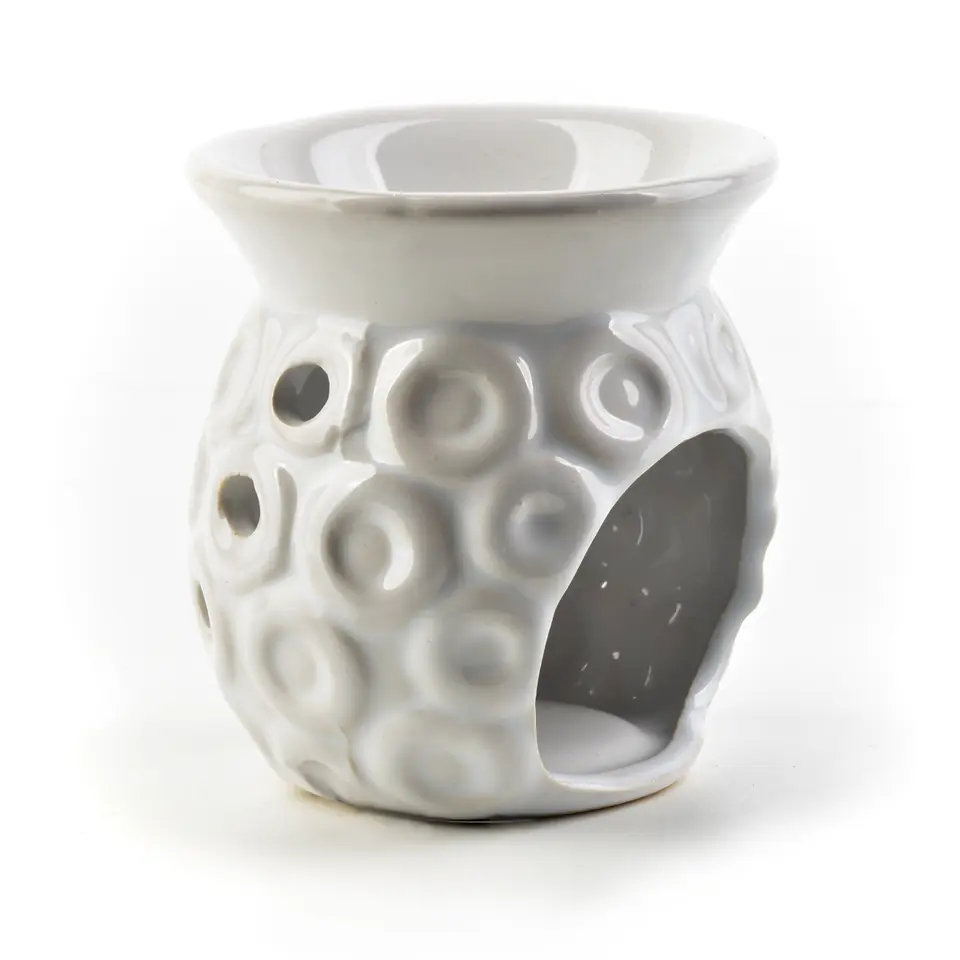 Ceramiczny kominek na olejek zapachowy. Służy do aplikacji olejków i wosków zapachowych. Odpowiednia wysokość kominka oraz pojemna miseczka sprawiają, że kominek idealnie nadaje się do wosków zapachowych oraz zapewnia komfort w korzystaniu z olejków zapachowych. Na górze kominka należy umieścić wosk lub olejek zapachowy, a w dolnej części należy umieścić małą świeczkę typu tealight w celu podgrzania i uzyskania zapachu. W miseczce można roztapiać cały wosk lub jego fragment, nie należy dodawać do wosku wody. WYMIARY: ŚREDNICA 7cm WYSOKOŚĆ 7,5cm brak opakowania jednostkowego opakowanie wewnętrzene-12szt