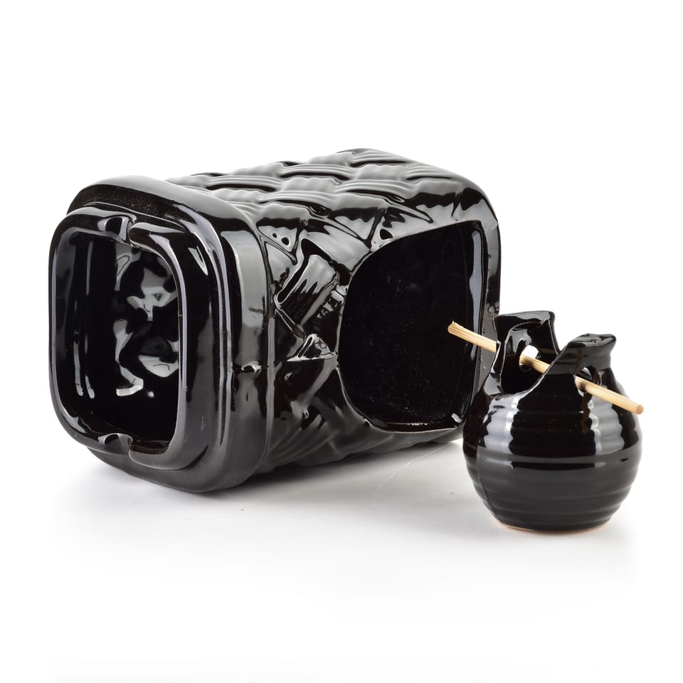 Duży ceramiczny kominek na olejek zapachowy z miseczką zawieszoną na drewnianym patyczku to wyjątkowy element dekoracyjny, który łączy w sobie funkcjonalność i unikalny design. Wykonany z wysokiej jakości ceramiki, wyróżnia się nie tylko solidnym wykonaniem, ale także efektowną fakturą przypominającą splot, która nadaje mu naturalnego i eleganckiego charakteru.Miseczka na olejek zapachowy, umieszczona na drewnianym patyczku, jest stabilna i łatwa w użyciu. Taka konstrukcja dodaje kominkowi lekkości i nowoczesności, jednocześnie podkreślając jego oryginalny styl. Drewniany element wprowadza ciepło i harmonię, doskonale komponując się z ceramiką o fakturze splotu. Dolna część kominka jest przeznaczona na tealight, którego delikatne światło tworzy przyjemną, relaksującą atmosferę, podgrzewając wodę z olejkiem i uwalniając subtelny zapach.wymiary: 8,5x8,5x12cmmiseczka na patyku: 5x5x5,5cmwaga: 400gzapakowany jednostkowy box