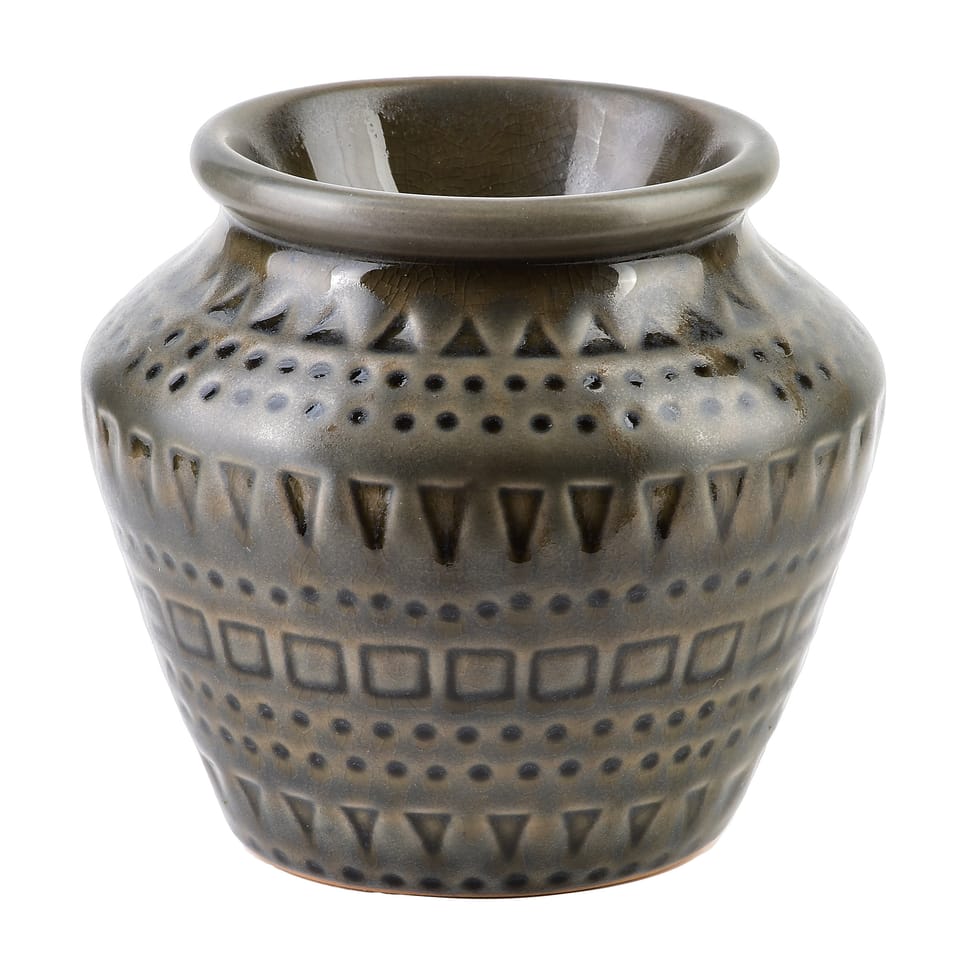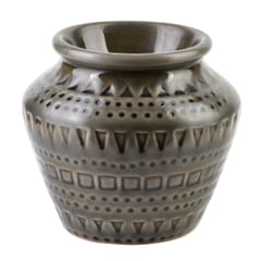 Ceramiczny kominek na olejek zapachowy o wymiarach 8x11cm i wysokości 10cm to elegancki, kompaktowy dodatek, który wprowadza do wnętrza ciepło i relaksującą atmosferę. Wykonany z wysokiej jakości ceramiki, łączy w sobie praktyczność z estetyką, czyniąc go idealnym elementem wyposażenia dla miłośników aromaterapii.Kominek charakteryzuje się niewielkim, minimalistycznym kształtem, dzięki czemu z łatwością dopasuje się do każdego wnętrza, niezależnie od stylu . od nowoczesnych aranżacji po bardziej klasyczne czy boho. Jego górna część służy jako miseczka na wodę z dodatkiem olejku zapachowego, a dolna przestrzeń umożliwia umieszczenie tealighta, który delikatnym płomieniem podgrzewa mieszankę, uwalniając przyjemny aromat.wymiar: 8x11,5x10cmwaga: 350gzapakowany jednostkowo w box