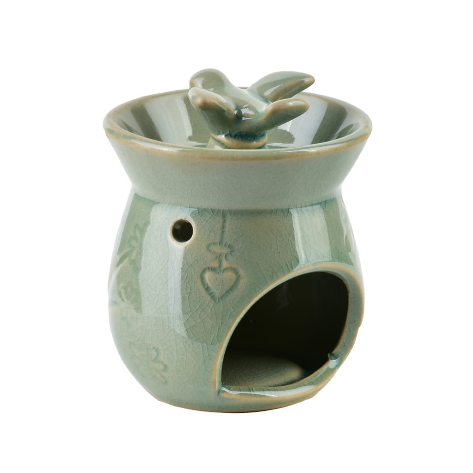 Mały ceramiczny kominek na olejek to uroczy i funkcjonalny dodatek do każdego wnętrza. Wykonany z ceramiki, wyróżnia się klasyczną formą oraz delikatnym akcentem w postaci figurka ptaszka na górnej części, która dodaje mu subtelnego uroku i naturalnego charakteru.Kominek posiada klasyczną konstrukcję . dolna część przeznaczona jest na świeczkę typu tealight, a górna miseczka, umieszczona w pobliżu ptaszka, służy do nalewania wody z kilkoma kroplami ulubionego olejku eterycznego. Gdy świeczka rozgrzewa wodę, kominek delikatnie uwalnia przyjemny zapach, tworząc atmosferę spokoju i relaksu.Ten niewielki kominek jest idealny do zastosowania w sypialni, salonie czy łazience, a dzięki swojemu rozmiarowi świetnie sprawdzi się również jako prezent.wymiary:8x5x9cm waga: 218g