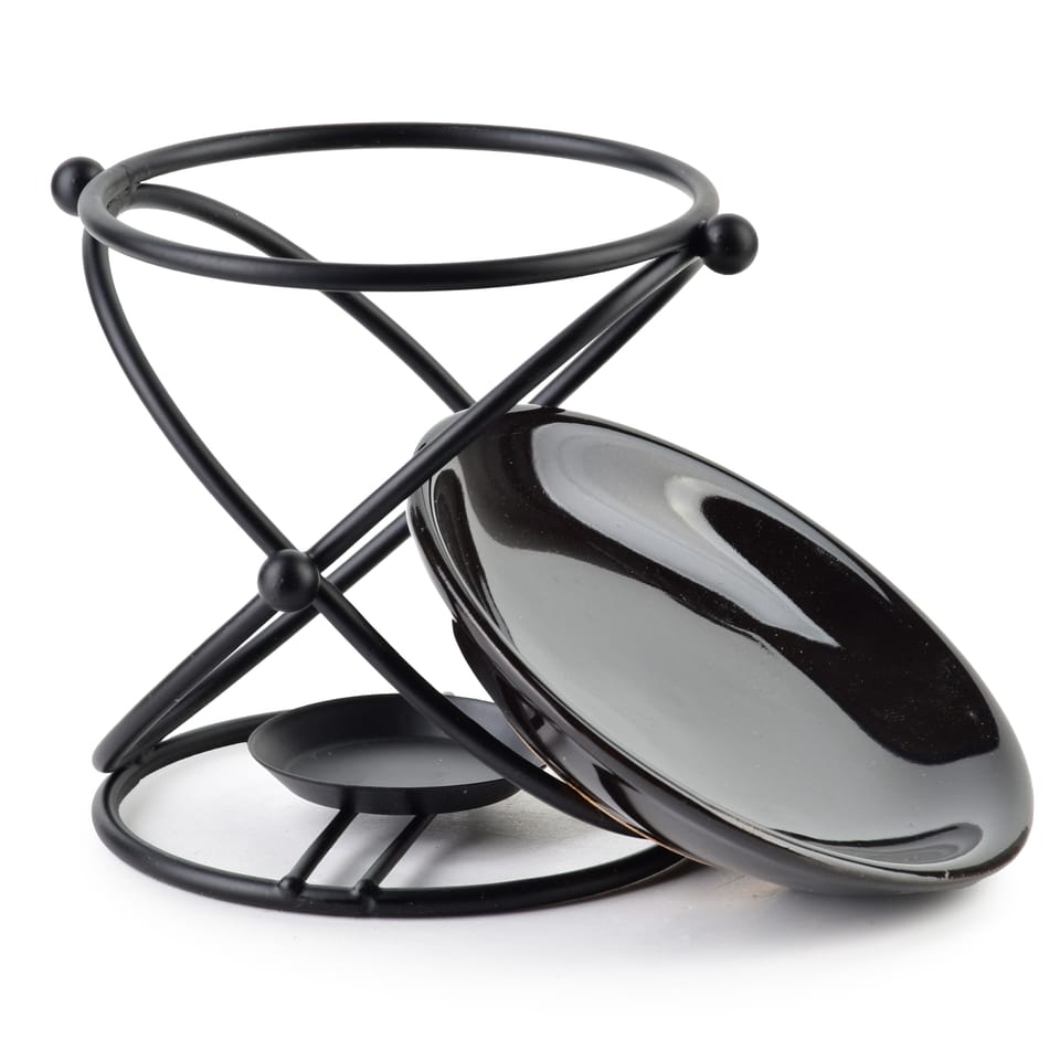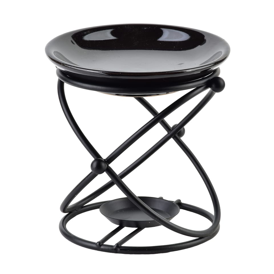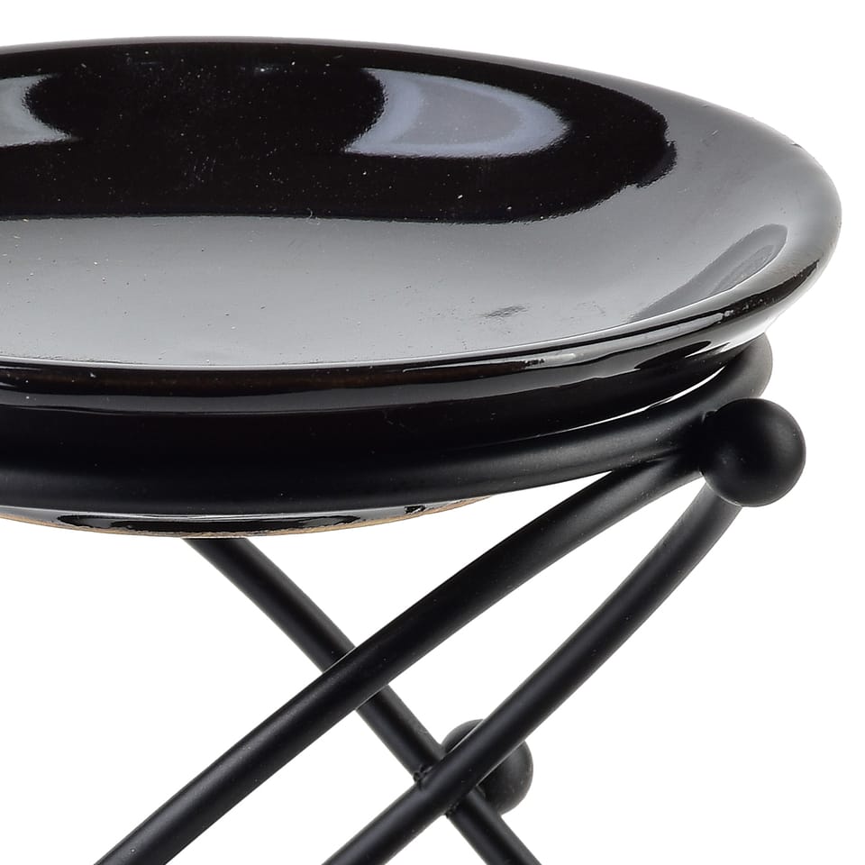 Kominek aromatyczny 9,8..9,5..11,5.cmWprowadź do swojego domu nutę elegancji i odprężenia dzięki pięknemu kominkowi na olejek zapachowy. Połączenie czarnego, metalowego stelażu i delikatnej, ceramicznej miseczki tworzy stylową i praktyczną dekorację, idealną do każdej aranżacji . od nowoczesnych salonów po przytulne sypialnie.. Co wyróżnia ten model? Styl i trwałość: czarny, ażurowy stelaż z metalu łączy się z kremową miseczką z wysokiej jakości ceramiki . elegancja i wytrzymałość w jednym.Optymalne wymiary: 9,8.cm szerokości, 9,5.cm głębokości i 11,5.cm wysokości . kompaktowy rozmiar pozwala na wygodne ustawienie w dowolnym miejscu.Wygoda użytkowania: pojemna miseczka pomieści olejek lub wosk, generator ciepła to klasyczny tealight, łatwo dostępny i bezpieczny.Łatwy i szybki sposób na relaks: podgrzewany aromat unosi się już po chwili, tworząc odprężającą atmosferę wieczorowej chwili dla siebie... Jak używać:Umieść palącą się świeczkę typu tealight pod kominkiem.Na górze wlej kilka kropel olejku eterycznego lub umieść kawałek wosku zapachowego.Zrelaksuj się przy delikatnym cieple i aksamitnym aromacie.