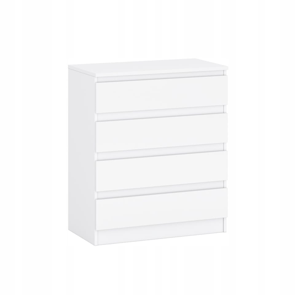 Funkcjonalna komoda w prostym stylu urządzi wnętrze sypialni, salonu lub pokoju dziecka. Konstrukcja mebla łączący minimalizm i elegancję oraz uniwersalny kolor.