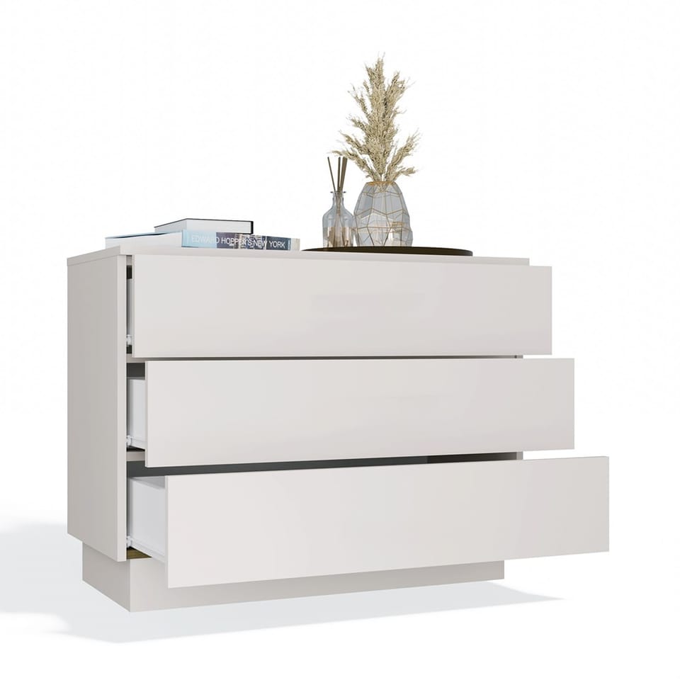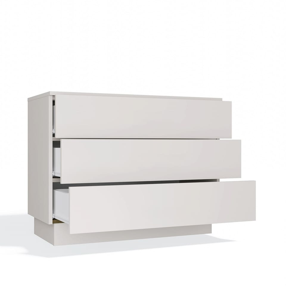 Nowoczesna komoda z serii AMBER to stylowe i funkcjonalne rozwiązanie do każdego wnętrza. Dzięki kompaktowym wymiarom idealnie sprawdzi się w sypialni, salonie, przedpokoju lub pokoju młodzieżowym. Wyposażona została w 3 pojemne szuflady, które ułatwią przechowywanie odzieży, dokumentów i drobnych akcesoriów. Minimalistyczna forma, matowe wykończenie oraz starannie dobrana kolorystyka sprawiają, że mebel świetnie komponuje się z różnymi aranżacjami.