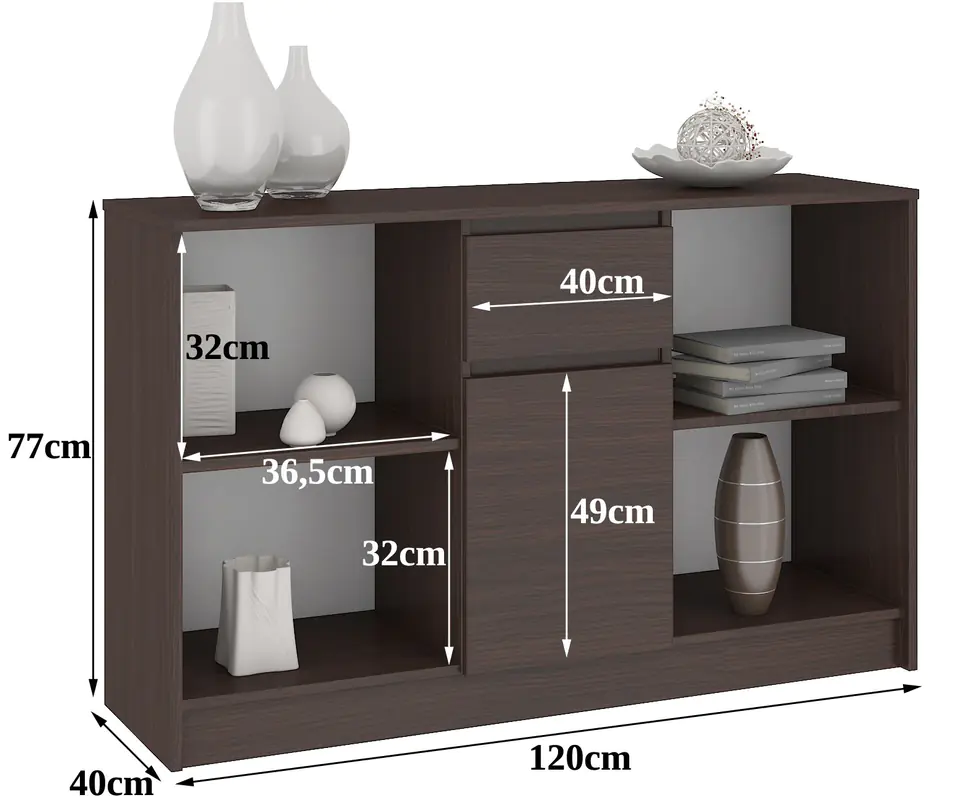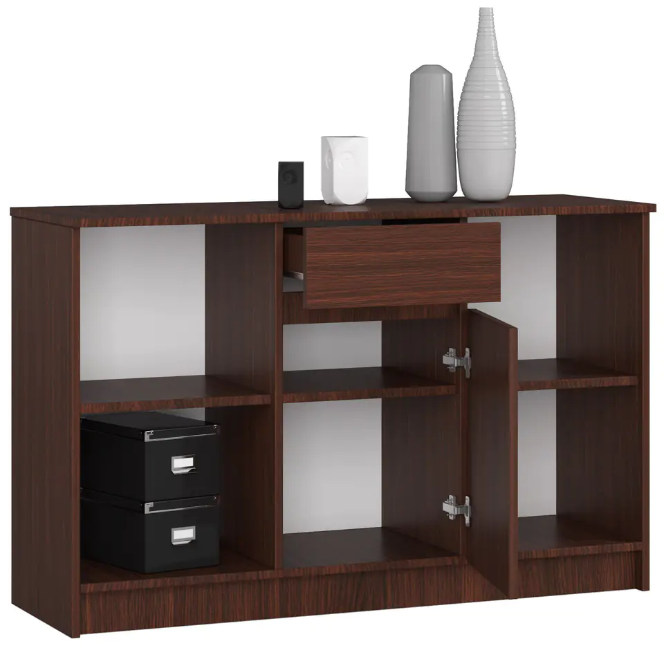 Czym kierujemy się podczas wyboru mebli do aranżowanego przez nas wnętrza? Przede wszystkim wyglądem. Chcemy, aby wybierane przez nas meble doskonale łączyły się z innymi elementami wyposażenia wnętrza. Uniwersalna i ponadczasowa komoda w stylowym kolorze wenge bez wątpienia sprosta Państwa wymaganiom. Komoda z zestawu B-17 to modułowa konstrukcja, która umożliwia stworzenie zestawu biurka narożnego dostępnego w naszym sklepie internetowym. Doskonale spisuje się również jako samodzielny mebel. Jej wymiary to 120 centymetrów / 77 centymetrów / 40 centymetrów. Mebel jest łatwy w utrzymaniu czystości, ponadto na uwagę zasługuje jego wysoka jakość. Trwała i odporna na ścieranie płyta, z której został wykonany, została zaprojektowana w ciekawej kolorystyce. Na uwagę zasługuje również korzystna cena produktu. Zachęcamy do poznania pozostałych propozycji pochodzących z tej kolekcji.Dzięki naszym artykułom będą Państwo mogli stworzyć praktyczne i piękne wnętrze o charakterze biurowym i nie tylko. Komoda może zostać wykorzystana także w pokoju dziennym, gościnnym, młodzieżowym, a nawet sypialni.