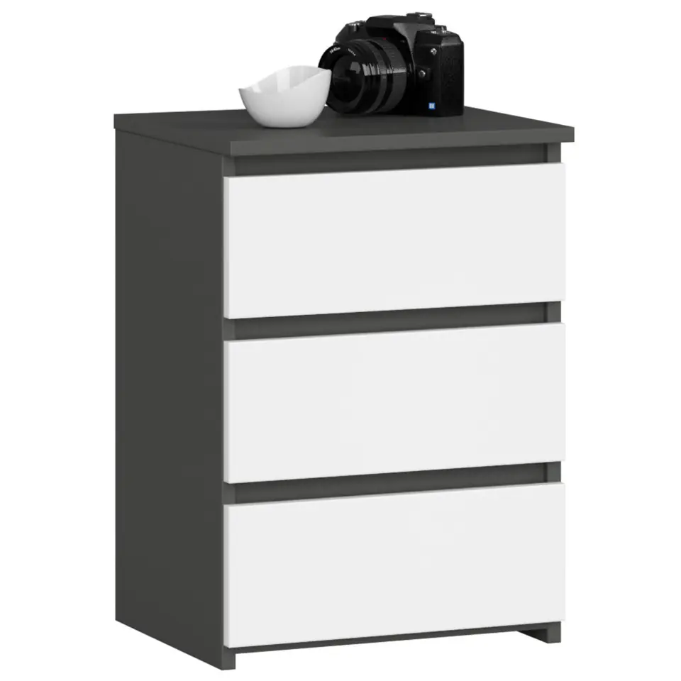 Szafki nocne to popularny typ mebla, który umieszcza się przy łóżku. Na jego blacie najczęściej znajduje się lampka, zaś wewnątrz przedmioty ułatwiające odpoczynek oraz sen. Osoby, które szukają eleganckiej komody, powinny zwrócić uwagę na szafkę nocną CL3 40 cm w kolorze grafit szary z białymi frontami. Będzie się ona pięknie prezentować w każdej sypialni. Postawić można ją również w pokoju dziecięcym.