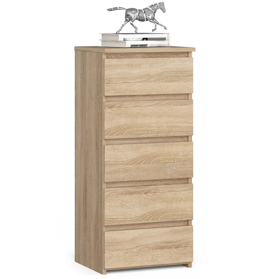 Komody to popularny typ mebla, który umieszcza się przy łóżku. Na jego blacie najczęściej znajduje się lampka, zaś wewnątrz przedmioty ułatwiające odpoczynek oraz sen. Osoby, które szukają eleganckiej komody, powinny zwrócić uwagę na komodę CL5 40 cm w kolorze dąb sonoma. Będzie się ona pięknie prezentować w każdej sypialni. Postawić można ją również w pokoju dziecięcym.