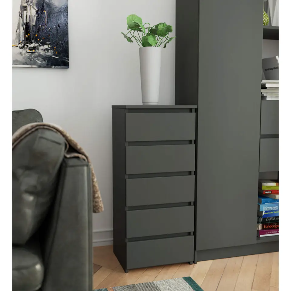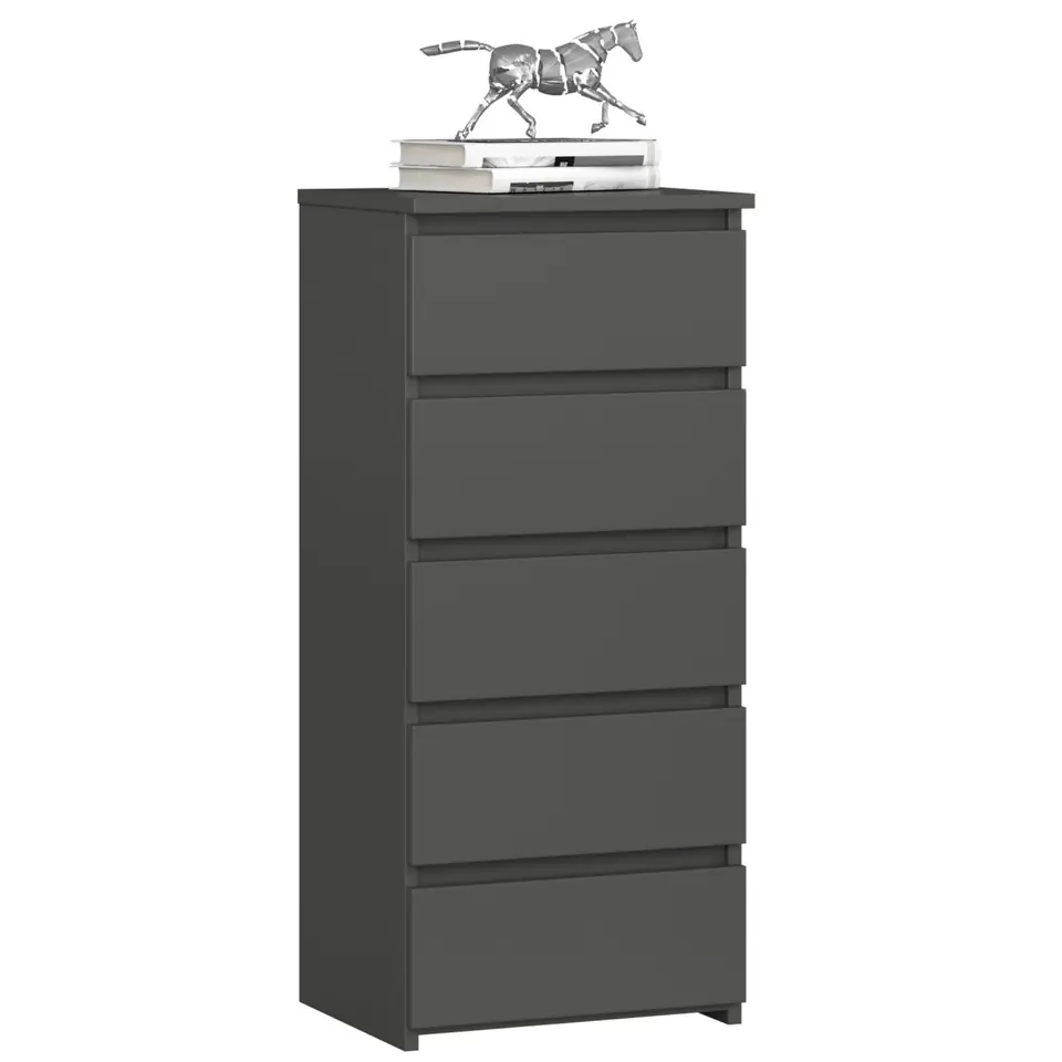 Komoda to popularny typ mebla, który umieszcza się przy łóżku. Na jego blacie najczęściej znajduje się lampka, zaś wewnątrz przedmioty ułatwiające odpoczynek oraz sen. Osoby, które szukają eleganckiej komody, powinny zwrócić uwagę na komodę CL5 40 cm w kolorze grafit szary. Będzie się ona pięknie prezentować w każdej sypialni. Postawić można ją również w pokoju dziecięcym.