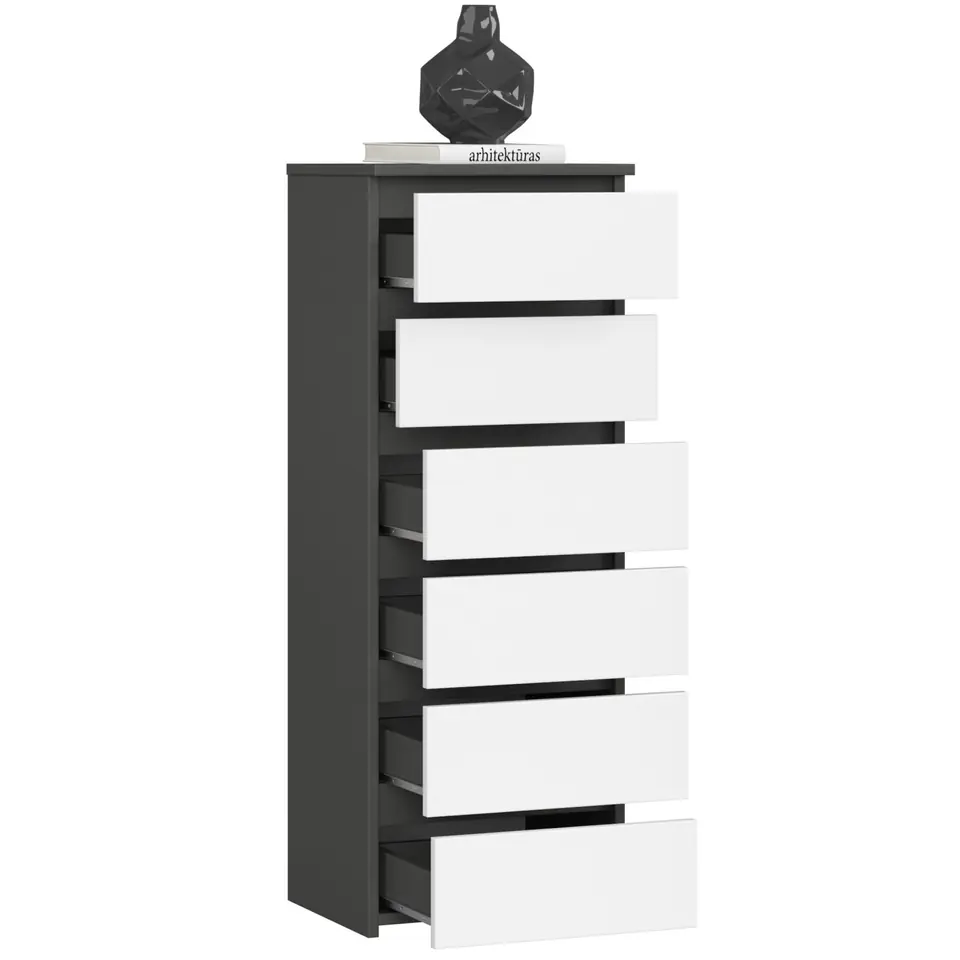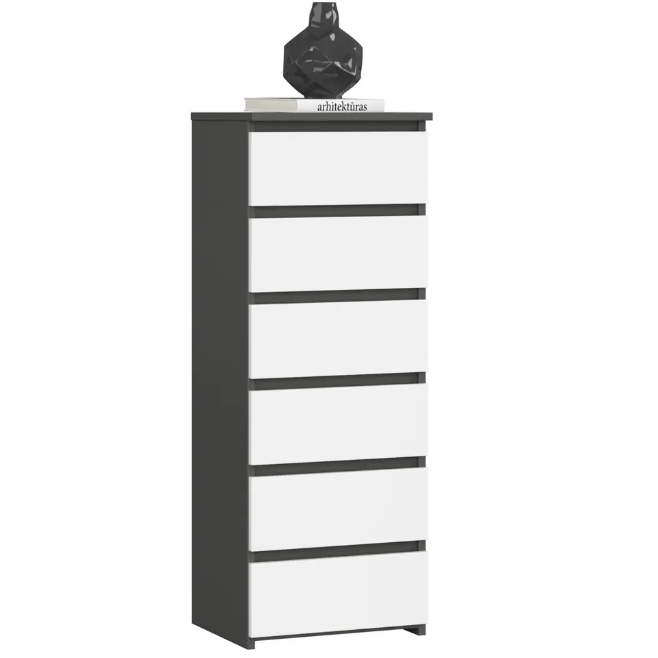 Komody to popularny typ mebla, który umieszcza się przy łóżku. Na jego blacie najczęściej znajduje się lampka, zaś wewnątrz przedmioty ułatwiające odpoczynek oraz sen. Osoby, które szukają eleganckiej komody, powinny zwrócić uwagę na komodę CL6 40 cm w kolorze grafit szary biały. Będzie się ona pięknie prezentować w każdej sypialni. Postawić można ją również w pokoju dziecięcym.