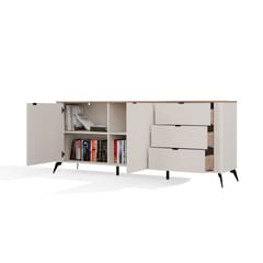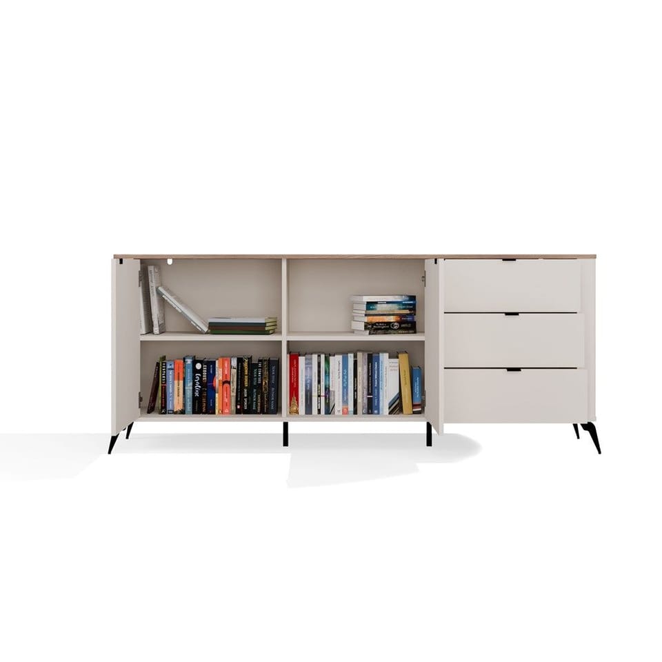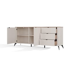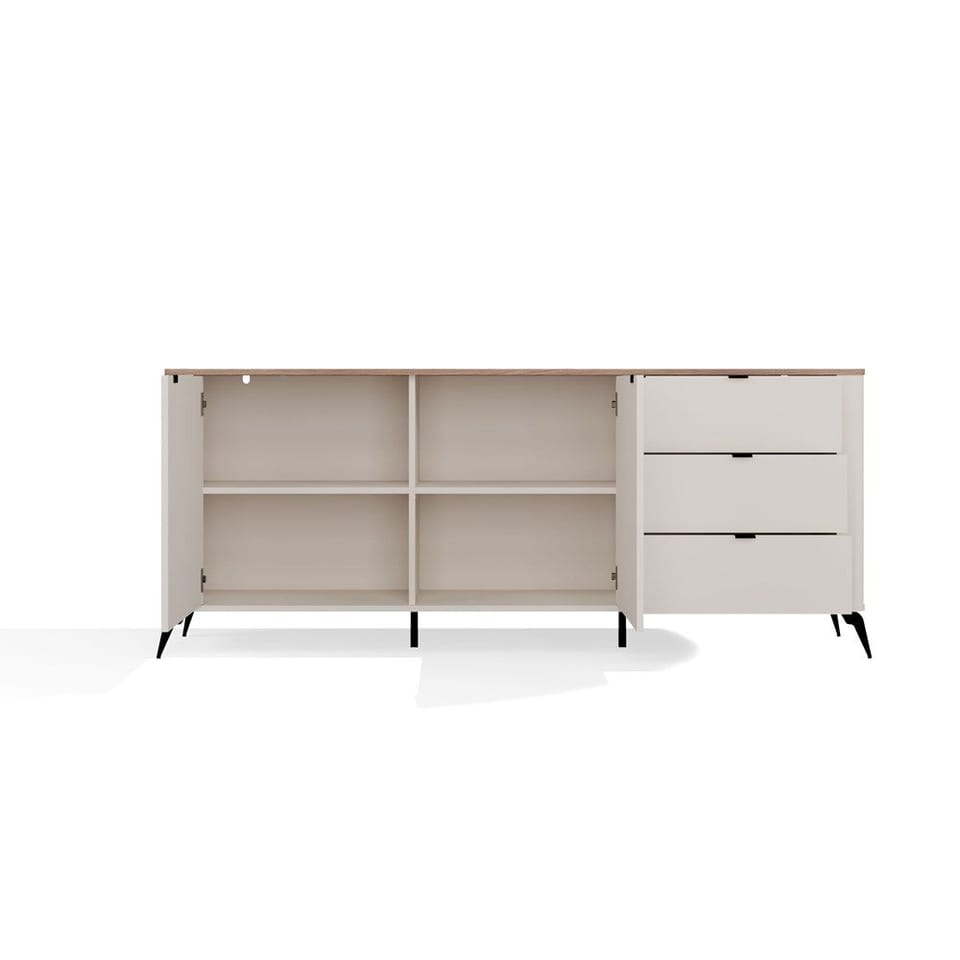 Układ 2 drzwi i 3 pojemnych szuflad zapewnia dużo miejsca na przechowywanie – zarówno rzeczy codziennego użytku, jak i tych, które chcemy mieć poza zasięgiem wzroku.