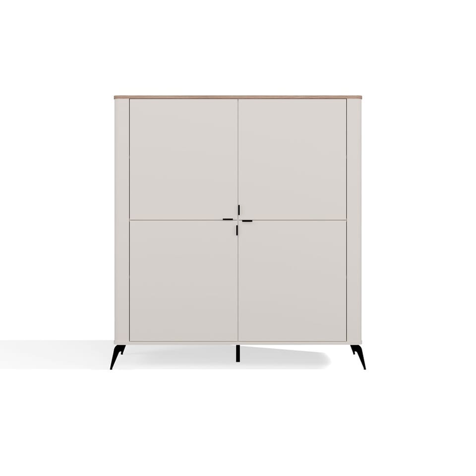 Komoda CORDOBA 4D to propozycja dla osób ceniących styl, funkcjonalność i wysoką jakość wykonania. Połączenie modnego odcienia kaszmiru z naturalnym dekorem blatu Dąb Castello nadaje meblowi ponadczasowy charakter, który doskonale uzupełni zarówno nowoczesne, jak i klasyczne wnętrza.