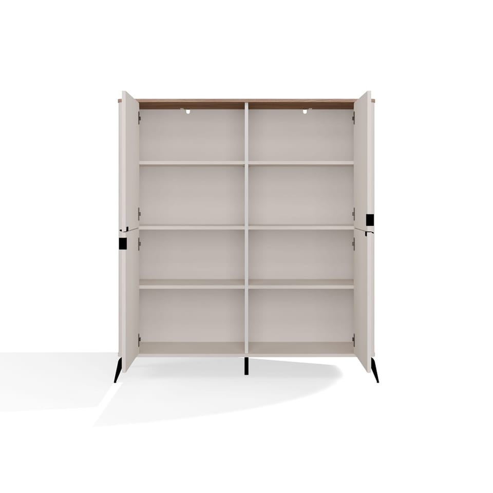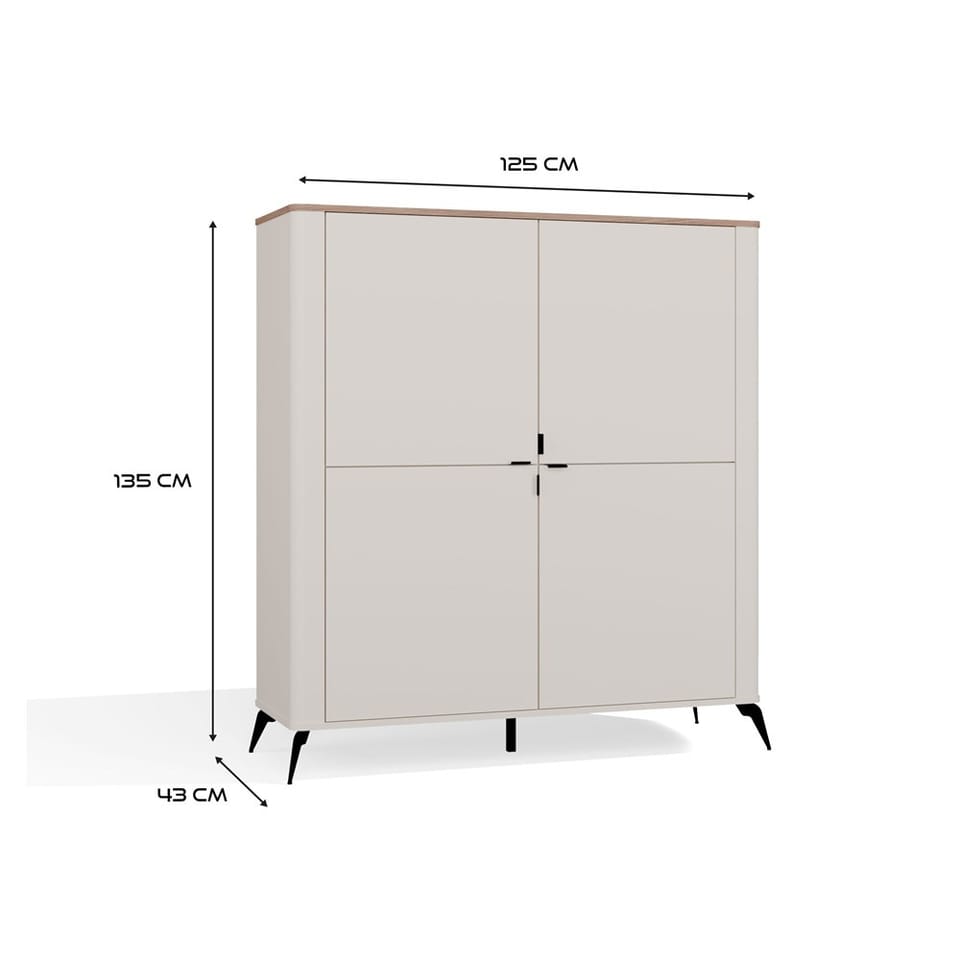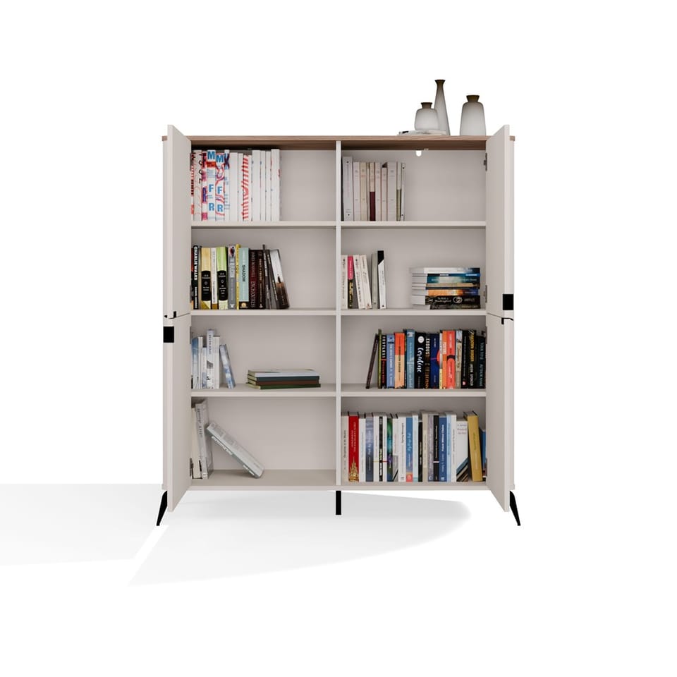 Model wyposażony jest w cztery fronty z cichym domykiem, za którymi kryje się aż osiem praktycznych półek – idealnych do przechowywania książek, dokumentów, tekstyliów czy codziennych akcesoriów.