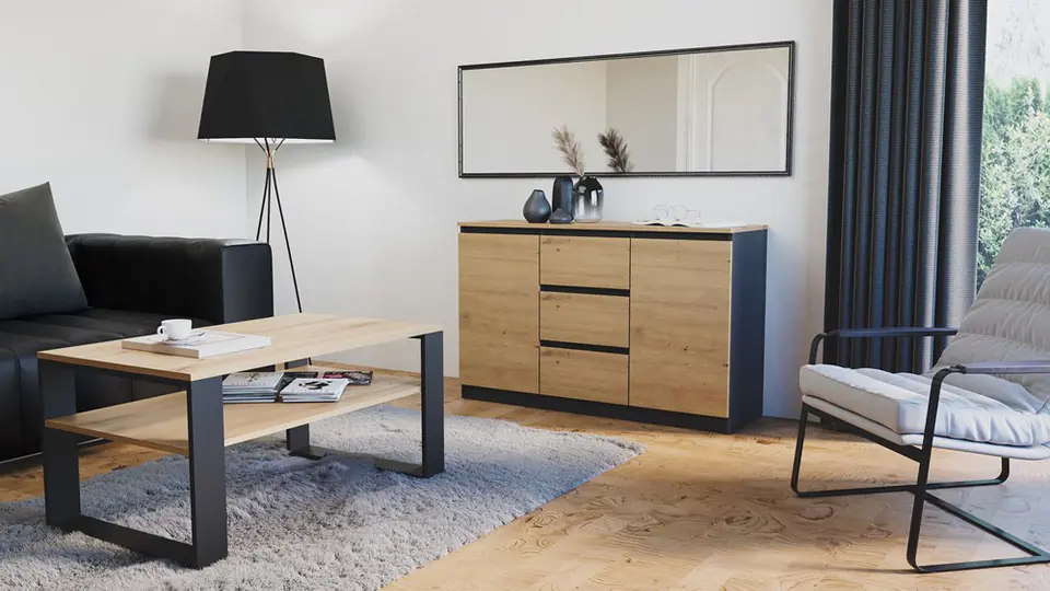 - Bezuchwytowe fronty szuflad oraz drzwi zapewniają wygodne użytkowanie i podkreślą modernistyczny charakter wnętrza