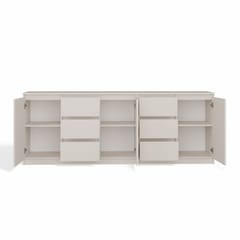 - Bezuchwytowe fronty szuflad oraz drzwi zapewniają wygodne użytkowanie i podkreślą modernistyczny charakter wnętrza.
