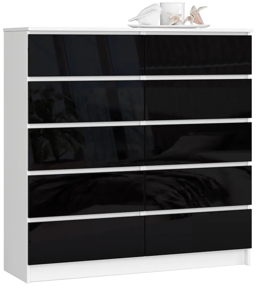 - Fronty wykonane z płyty MDF AKRYL czarny połysk - Szuflady poruszają się na metalowych prowadnicach kulkowych