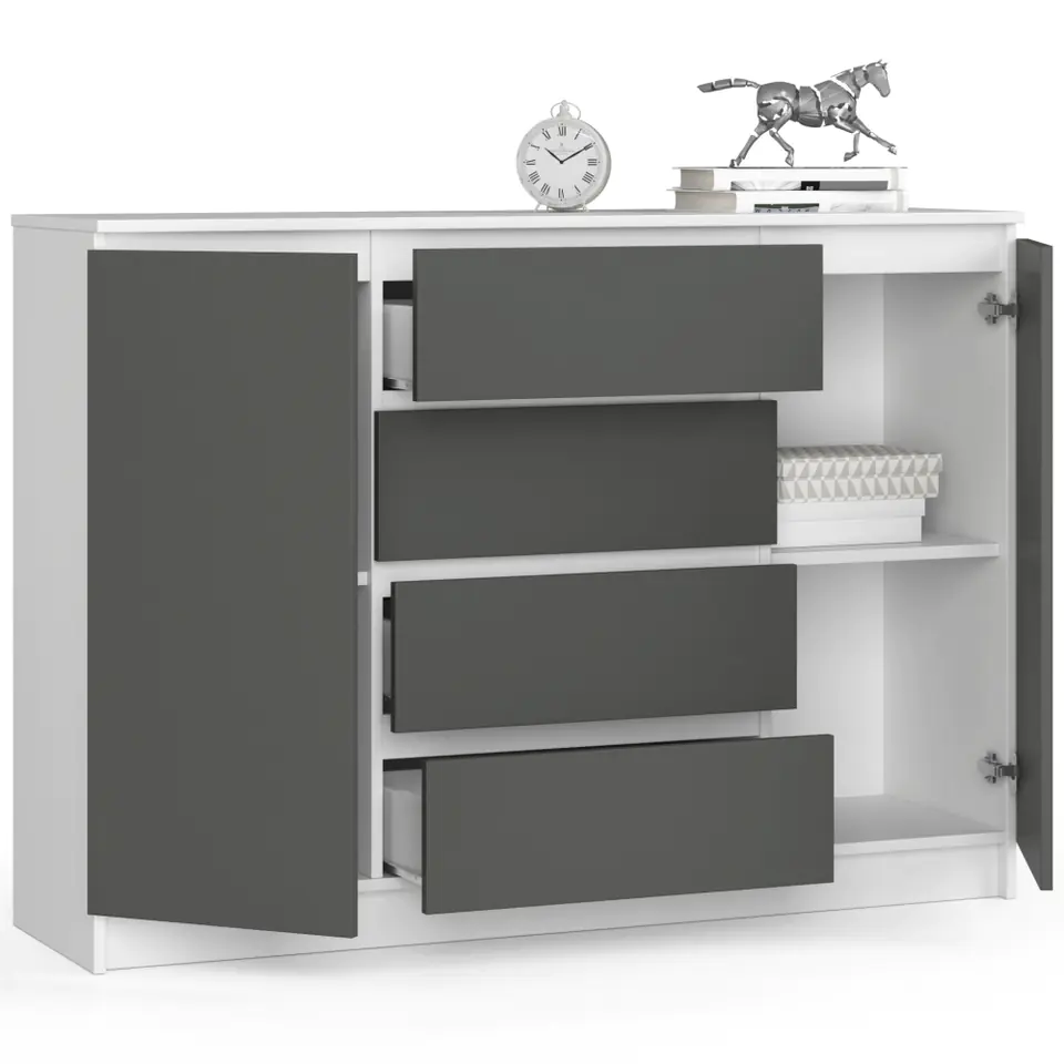 - Krawędzie oklejone obrzeżem ABS zapewniającym wysoką ochronę na uszkodzenia- Wewnątrz każdej z drzwiczek znajduje się jedna półka- Komoda do samodzielnego montażu - Instrukcja w dostawie - Gwarancja 24 miesiące