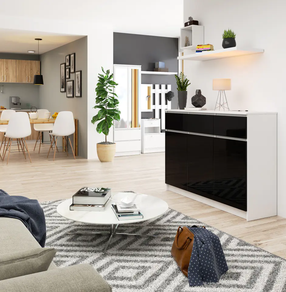 - Komoda wykonana z wysokogatunkowej płyty laminowanej 16mm odpornej na ścieranie. Płytę dostarcza producent Kronospan