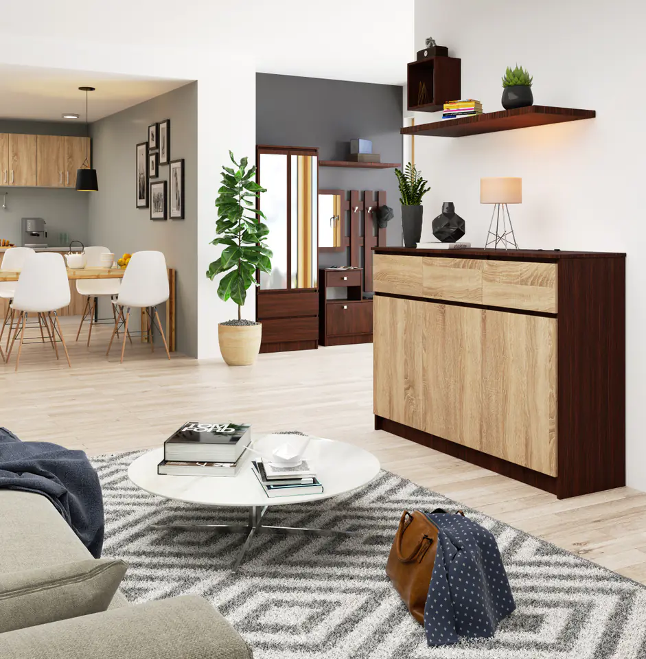 - wykonanie w systemie mebli CLP, co pozwala na zestawienie komody z innymi meblami producenta;