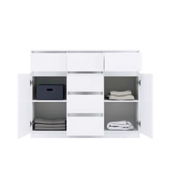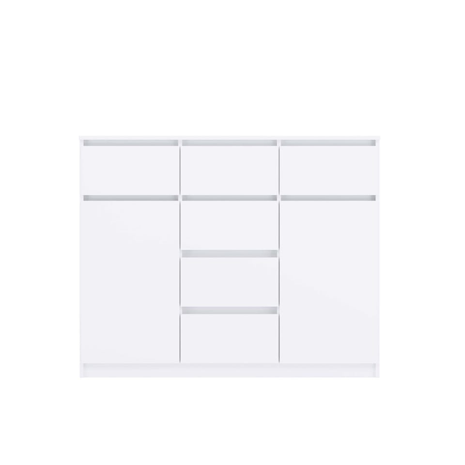 - Uniwersalny design: Prosta, elegancka forma komody w kolorze biel mat sprawia, że będzie pasować zarówno do nowoczesnych, jak i klasycznych aranżacji wnętrz. Bezuchwytowe fronty podkreślają minimalistyczny charakter, jednocześnie zapewniając wygodę użytkowania.