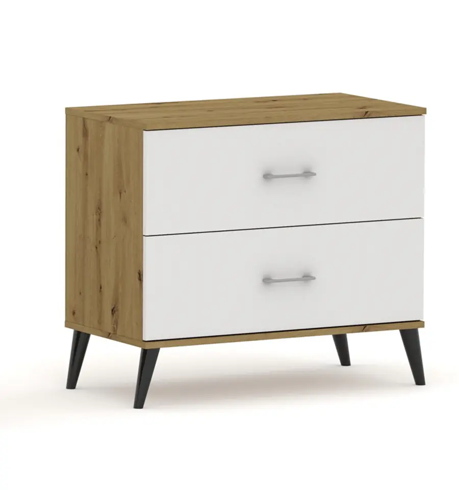 Komoda Pola 2N - 4 szerokości. Dab Artisan/połysk, 2 pojemne szuflady na nożkach