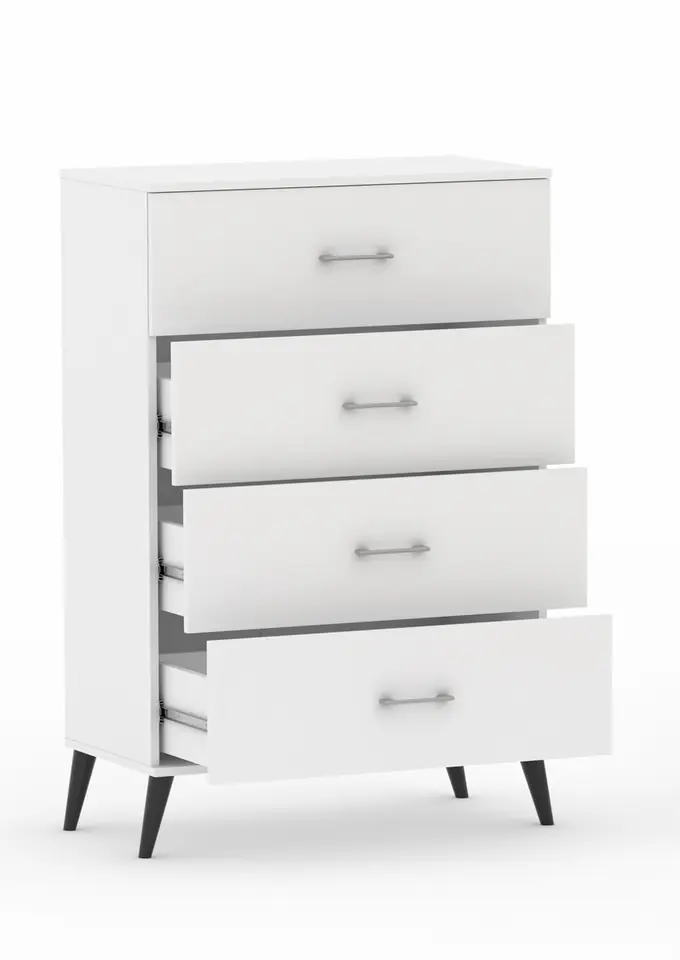 Komoda POLA 4N Biała - 4 szerokości. Pojemna komoda na nóżkach