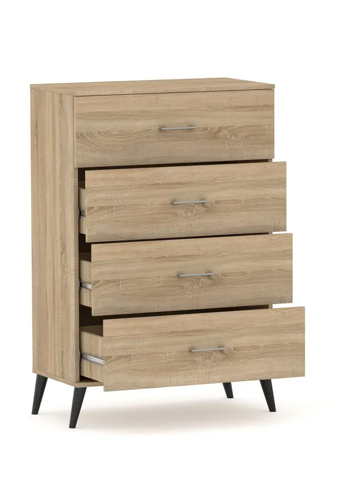 Komoda POLA 4N Dab Sonoma - 4 szerokości. Pojemna komoda na nóżkach