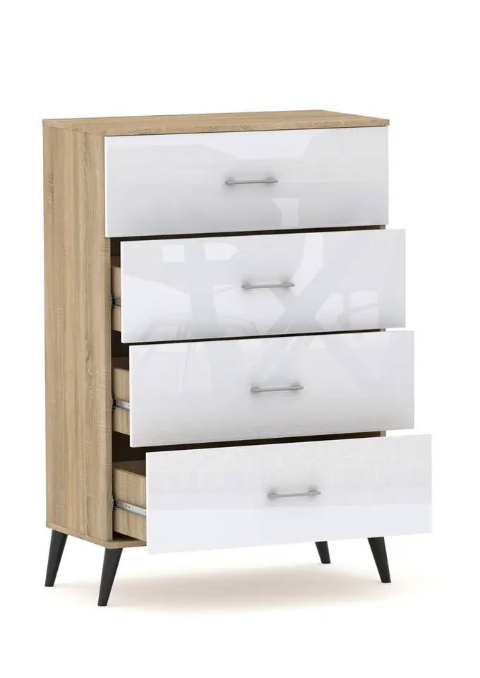 Komoda POLA 4N Dab Sonoma / połysk - 4 szerokości. Pojemna komoda na nóżkach