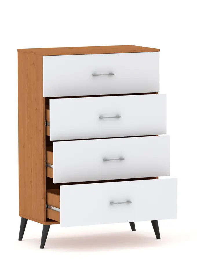 Komoda POLA 4N olcha/biala - 4 szerokości. Pojemna komoda na nóżkach