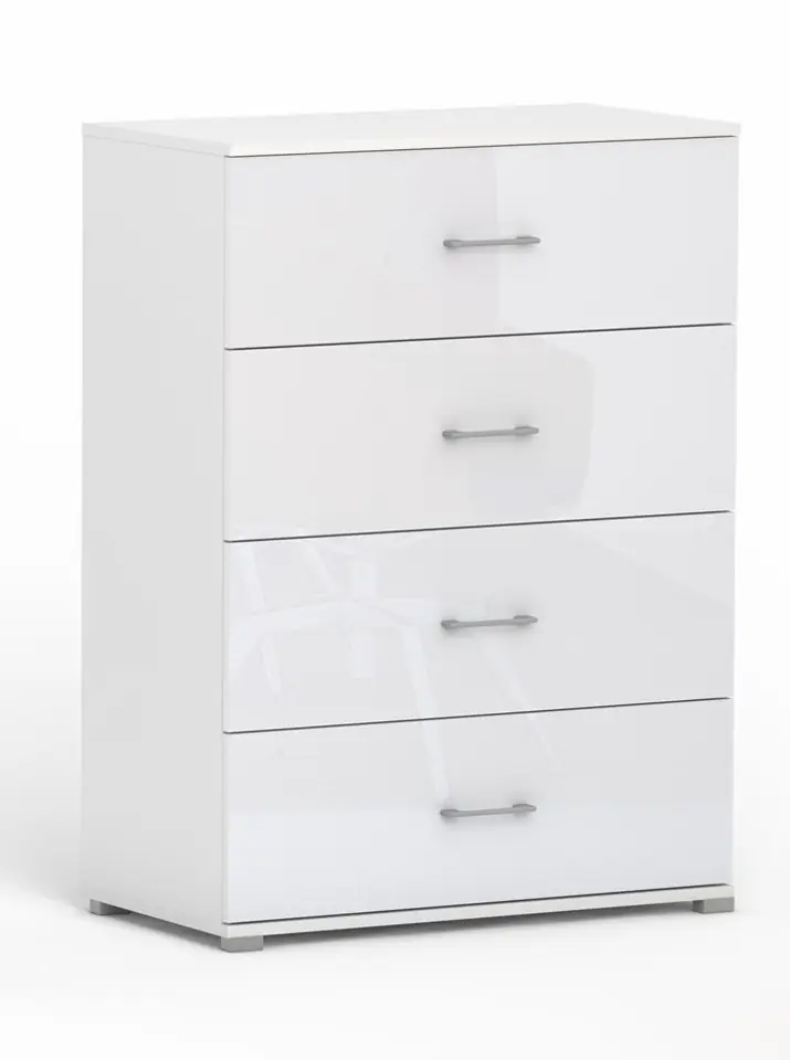 KOMODA POLA 4S BIAŁA - Fronty w POŁYSKUNowoczesna komoda z seri POLA, stworzony dla ludzi, którzy cenią sobie nowoczesny styl i elegancję. Odnowi wnętrze każdego salonu, biura czy pokoju młodzieżowego. Konstrukcja jest minimalistyczna, ale solidna i trwała. Ergonomiczne wymiary zapewniają swobodne umeblowanie pomieszczenia. Wymiary komody: Wysokość: 110 cmSzerokość: 50 do 80 cm.Głebokość: 40 cmKomoda posiada 4 szuflady zamontowane na prowadnicach kulkowych z pełnym wysuwem. Wysokość frontu to aż 25,5 cm ! Wymiar użyteczny szuflady w środku:głębokość: 33 cmszerokość: 41/ 51/ 61/ 71/ cmwysokość boczku: 16 cm max wysokość przedmiotu który się zmieści w szufladzie 21 cm.