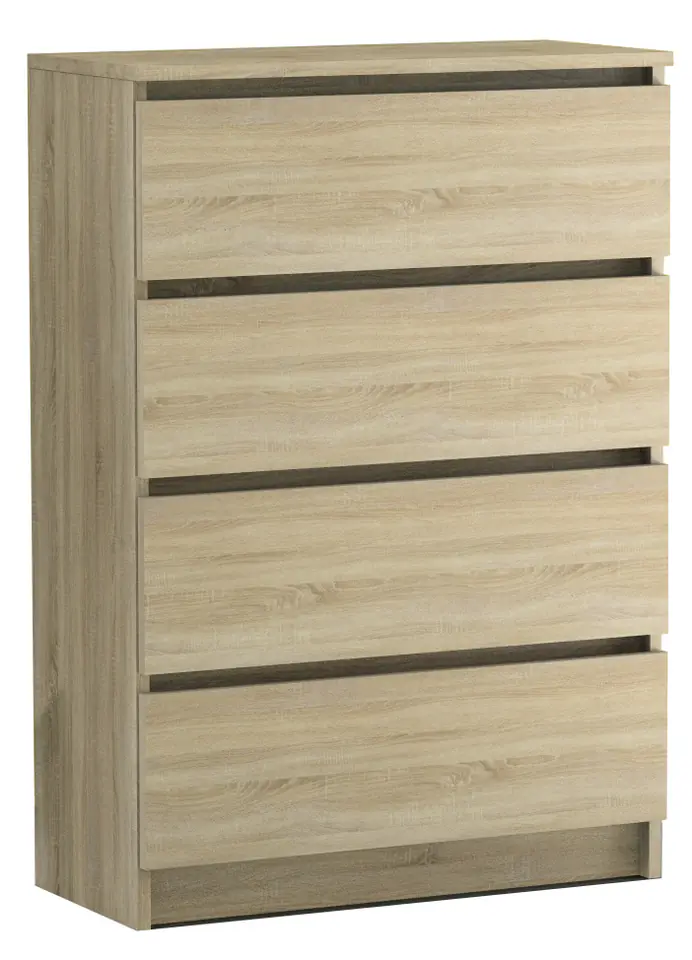 Komoda z serii RICO jest meblem nowoczesnym, solidnie i dobrze wykonanym. Materiał to płyta laminowana o grubości 16 mm, ktrórej krawędzie są oklejone PCV odpornym na wilgoć i zarysowania. Komoda posiada solidne prowadnice rolkowe z ogranicznikiem wysuwu.Komoda idealnie pasuje do salonu, sypialni lub pokoju dziecka. Jej nowoczesny wygląd i funkcjonalność spełnią oczekiwania najbardziej wybrednych klientów. Szuflady otwierane bezuchwytowoKomoda do samodzielnego montażu z czytelna instrukcja.Wymiary: