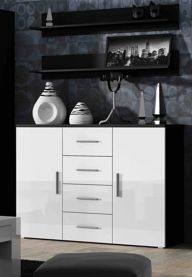 Komoda UNI czarny/ biały połysk