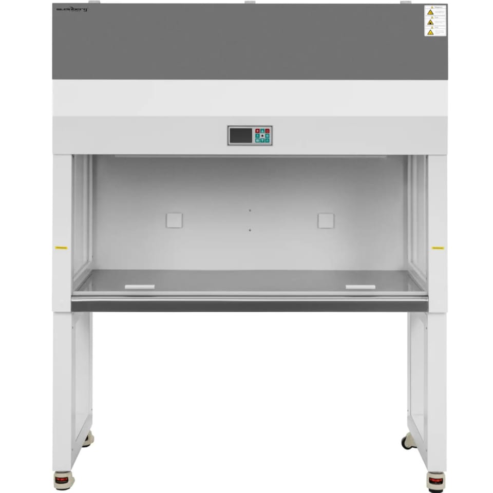 Kod producenta: 10031060Komora laminarna marki Steinberg Systems pozwala uniknąć zanieczyszczeń produktów i zapewnia sterylne warunki pracy. Gładkie powierzchnie ze stali nierdzewnej i przepływ przefiltrowanego powietrza zapewniają zamknięty system, w którym nie ma miejsca na bakterie ani zarazki. Wnętrze o wymiarach 1320 x 690 x 650 mm oferuje wystarczająco dużo miejsca do pracy z wrażliwymi materiałami, kulturami komórkowymi lub półprzewodnikami. Przepływ powietrza 0.2~0.6 m/s zapobiega przedostawaniu się powietrza z zewnątrz mogącemu negatywnie wpływać na pracę. Powietrze oczyszczane jest filtrem HEPA. Ponadto lampy UV o mocy 30 W również neutralizują bakterie i zarazki. Na tylnej ścianie loży laminarnej znajdują się dwa gniazda do zasilania urządzeń elektrycznych. Źródłem światła są dwie świetlówki o mocy 24 W. Przed rozpoczęciem pracy w kilku prostych krokach można wyczyścić powierzchnie ze stali nierdzewnej. Stół w komorze laminarnej zapewnia wygodną wysokość roboczą dzięki swojej stabilnej konstrukcji. Całość łatwo można ustawić za pomocą panelu sterowania z wyświetlaczem LED.Cechy produktu: