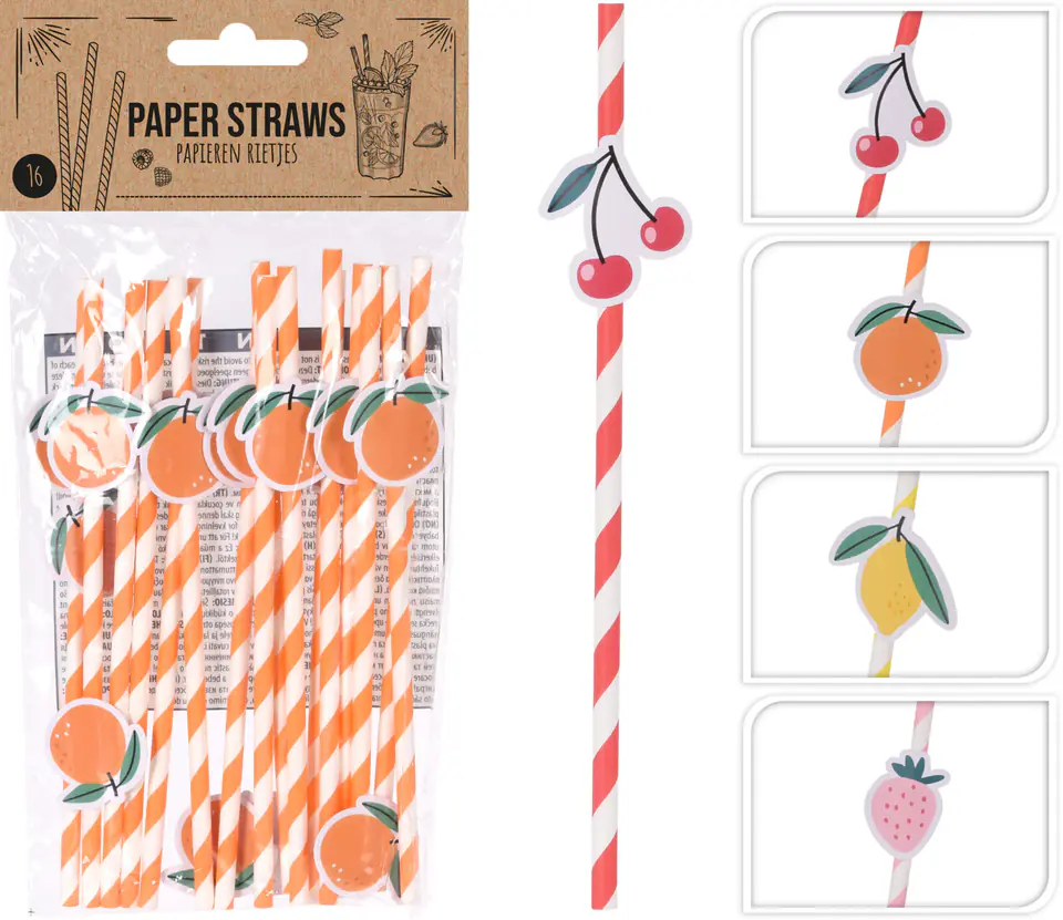 KOMPLET 16 SZTUK SŁOMEK PAPIEROWYCH 4 wzory