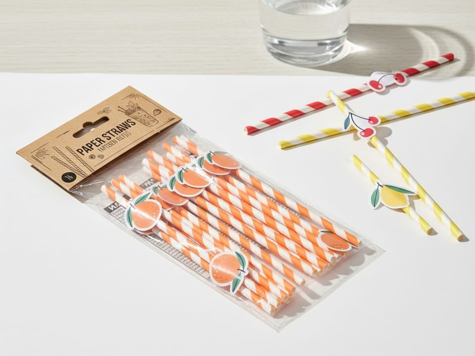 Komplet 16 Sztuk Słomek Papierowych z Wzorami Owoców . MondexSzukasz kreatywnego sposobu na urozmaicenie swoich napojów? Ten zestaw 16 słomek papierowych w czterech owocowych wzorach nie tylko nadaje świeżości, ale także jest przyjazny dla środowiska. Idealny na przyjęcia, pikniki lub codzienne użytkowanie!Kluczowe cechyWymiary: 38 cm długości, 3,07 cm średnicyMateriał: papier najwyższej jakości, biodegradowalnyKolory: wyraziste odcienie pomarańczowego, czerwonego i żółtego w połączeniu z białymStyl: nowoczesny i radosny, idealny dla dzieci oraz dorosłychŁatwa obsługa: wystarczy umieścić w napoju i cieszyć się smakiem!Dlaczego warto wybrać Komplet Słomek Papierowych Mondex?Te słomki wyróżniają się nie tylko estetyką, ale też funkcjonalnością. Ich unikalne wzory owocowe z pewnością przyciągną uwagę na każdym stole. Wykonane z wysokiej jakości materiałów, są odporne na rozrywanie i nie zmieniają smaku napojów. Dzięki nim z łatwością stworzysz niezapomnianą atmosferę na swoich przyjęciach.Zastosowanie i pielęgnacjaSłomki papierowe są jednorazowe, jednak można je użyć do niektórych napojów do dwukrotnego użytku, pod warunkiem ich dokładnego wyczyszczenia. Przechowuj je w suchym miejscu, aby uniknąć wilgoci.Dane techniczneWymiary: 38 cm (długość) x 3,07 cm (średnica)Materiał: papierKolor: pomarańczowy, czerwony, żółty, białyKompatybilność: idealne do wszystkich napojówPojemność: 16 sztuk w opakowaniu