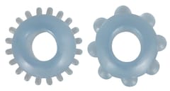 Dwa przezroczyste niebieskie pierścienie na penisa o różnej wielkości wypustek. Średnica wewnętrzna 1,3 cm - bardzo elastyczna. Materiał: TPE.
