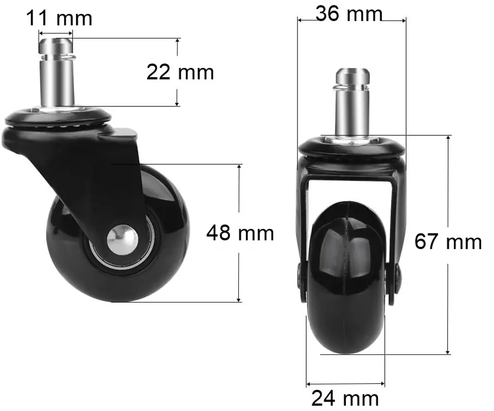 Komplet 5x kółka kauczukowe Ricky do foteli i krzesełKolor: czarny | materiał: kauczuk Zestaw 5 kółek kauczukowych eHokery Ricky to idealne rozwiązanie dla osób, które chcą odnowić swój fotel obrotowy lub poprawić jego funkcjonalność. Kółka te są wykonane z wysokiej jakości kauczuku, co zapewnia trwałość i odporność na ścieranie. Dzięki nim fotel będzie się łatwo i płynnie przesuwał po podłodze, co zwiększa wygodę i komfort użytkowania.Jedną z najważniejszych zalet tych kółek jest ich uniwersalność. Pasują one do większości modeli foteli obrotowych, dzięki czemu można je łatwo zamontować. Kółka te są również łatwe w utrzymaniu czystości. Dodatkowo, kółka kauczukowe są lepsze dla podłogi niż kółka plastikowe lub metalowe, ponieważ nie rysują one powierzchni i nie odkształcają się tak łatwo. Są również cichsze niż te wykonane z innych materiałów, co jest szczególnie ważne w przestrzeniach biurowych. W zestawie znajduje się 5 kółek, co pozwala na wymianę wszystkich kół jednocześnie, co zwiększa trwałość i stabilność fotela. Zestaw jest łatwy w montażu, a dzięki wysokiej jakości materiałom i solidnemu wykonaniu, kółka będą służyć przez długi czas. Jeśli szukasz sposobu na odnowienie swojego fotela obrotowego lub poprawienie jego funkcjonalności, zestaw 5 kółek kauczukowych jest idealnym rozwiązaniem. Dzięki niemu Twój fotel będzie się płynnie przesuwał po podłodze, a Ty będziesz mieć więcej komfortu i wygody podczas pracy. SpecyfikacjaMateriał: kauczuk + metalKolor: czarnyObrotowe: takŚrednica kółek: 48 mmRozmiar trzpienia: 11 x 22 mmNośność kółka: 35 kgMontaż: bezinwazyjny na wcisk, samodzielnyUniwersalność: pasują do większości foteli obrotowych oprócz modeli marki IkeaWaga zestawu: 0,90 kgZawartość zestawu: 5 kółek + oryginalne opakowanie Informacje dodatkowePrzedstawione kolory należy traktować poglądowo - mogą odbiegać od rzeczywistych ze względu na różne ustawienia monitorów oraz proces obróbki zdjęć. Rzeczywiste wymiary mogą się różnić od podanych wyżej. Tolerancja błędów może wynosić +/- 5%.Marka:GockowiakKod EAN:5905523060508Kod producenta:60508MGMateriał: kauczuk, metalIlość kółek w zestawie:5