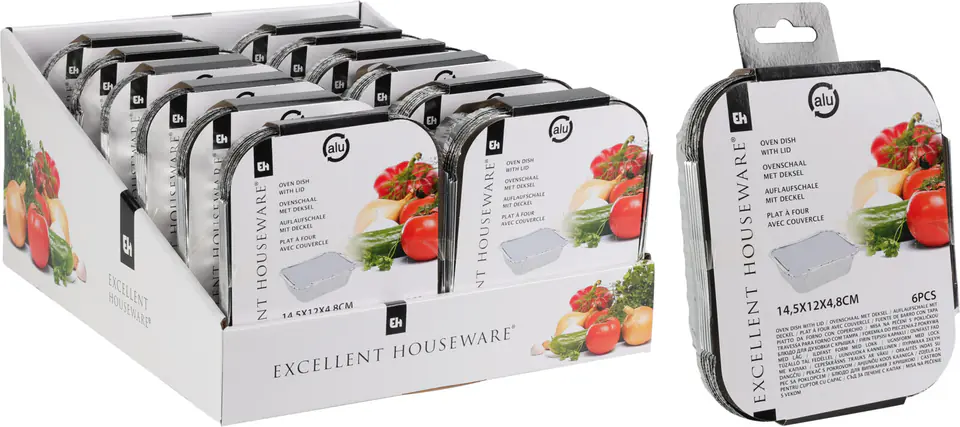 Komplet 6 foremek prostokątnych alumniowych z pokrywą.Nasze foremki z aluminium są doskonałe do pieczenia wszystkiego, od makaronów i lasagne po warstwowe desery wypełnione bogatym kremem i zwieńczone pysznymi owocami. Dodatkowo, każda pokrywa pomaga zatrzymać smak, jednocześnie zapobiegając rozlaniu - dzięki temu łatwiej niż kiedykolwiek przetransportujesz swoje kreacje, gdziekolwiek się znajdziesz.