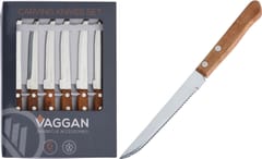 Zestaw noży do steków. W komplecie znajduje się 6 sztuk. Sztućce jak w restauracji we własnym domu. Dzięki zastosowaniudrewnianej rękojeści sztućce prezentują się wyjątkowo, w połączeniu z widelacami, z tej samej kolekcji tworzą świetny zestaw.