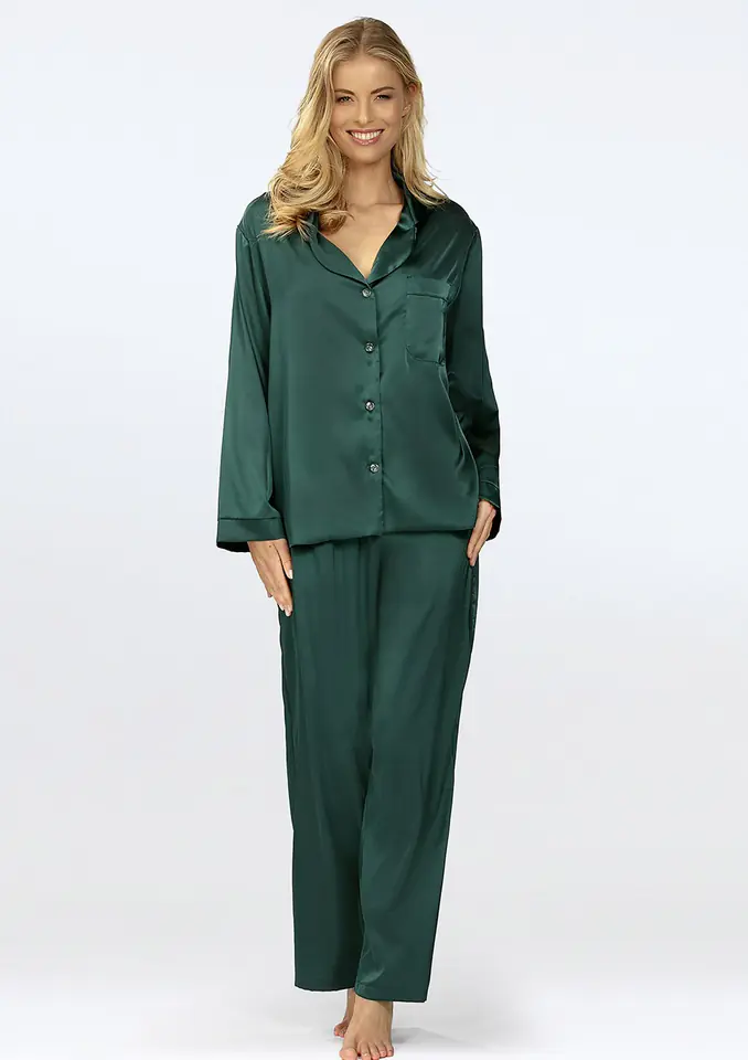 Zanurz się w luksusie i delikatności z naszym kompletem satynowym Amina - elegancką piżamą składającą się z długich spodni i góry z długim rękawem. Piżamka wykonana z najwyższej jakości satyny premium, to nie tylko wybór komfortu na dobranoc, ale także wyraz subtelnej elegancji i stylu. Delikatność materiału satyny premium sprawia, że dotykając piżamki Amina, doświadczysz aksamitnej przyjemności na skórze. Długie spodnie i góra z długim rękawem oferują kompleksową ochronę przed chłodem, zapewniając jednocześnie maksymalny komfort snu. Dostępny w siedmiu modnych kolorach, nasz komplet piżamowy pozwala na dostosowanie go do swojego gustu i nastroju. Bez względu na to, czy wybierasz stonowane odcienie, czy odważne kontrasty, nasza piżamka z satyny premium to gwarancja elegancji i wygody. Piżamka Amina to synonim doskonałej jakości wykonania i dbałości o detale. Niech wieczory stają się chwilami relaksu w wyjątkowym stylu, wybierając kompletny zestaw, który sprawi, że każdy sen będzie jeszcze przyjemniejszy. Z naszą piżamką satynową doświadczysz najwyższego komfortu snu w najpiękniejszym wydaniu. Jak prać i prasować? Taki materiał najlepiej prać ręcznie w temperaturze 30°C. Proszę nie chlorować, nie czyścić chemicznie i nie wirować. Prasować w temperaturze 110°C.