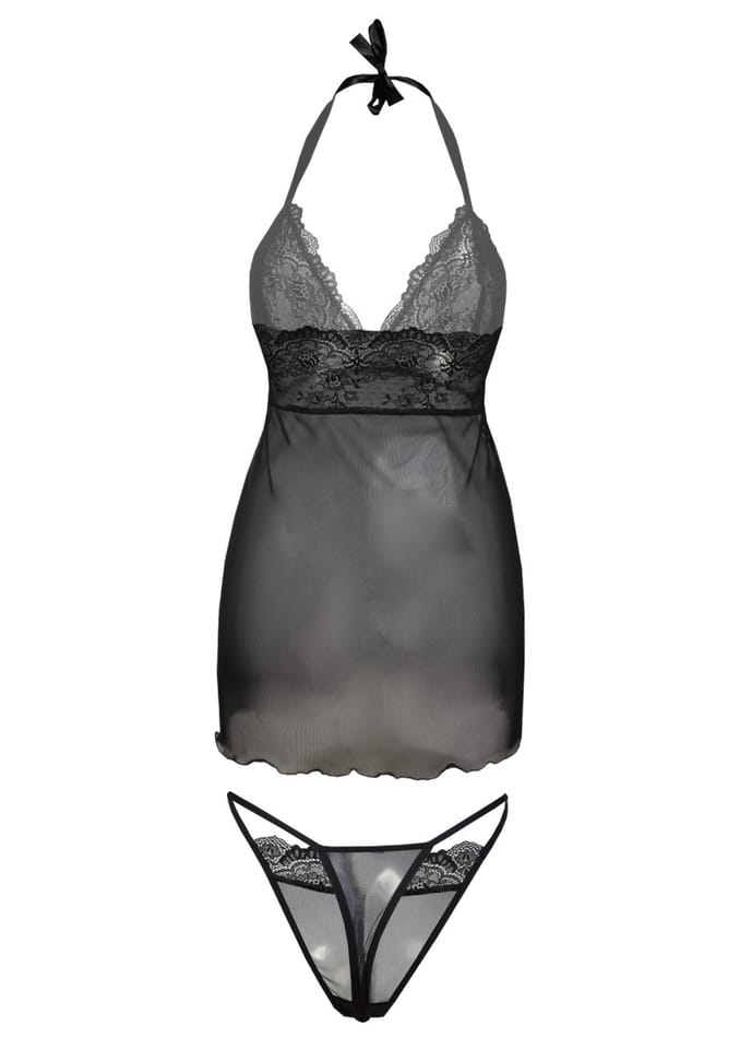 Prześwitujący komplet Arizona z koronki i siateczki