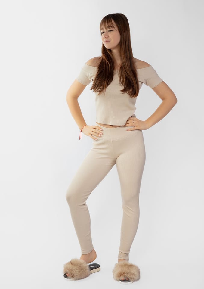 Odkryj niepowtarzalny urok i komfort dzięki naszemu zestawowi w prążki Bayo - połączenie modnych legginsów w prążki i bluzki o kroju hiszpanki. Komplet z pewnością przypadnie do gustu każdej kobiecie ceniącej sobie zarówno wygodę, jak i modę.