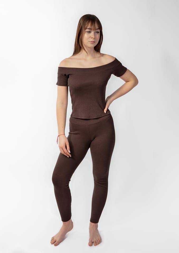 Odkryj niepowtarzalny urok i komfort dzięki naszemu zestawowi w prążki Bayo - połączenie modnych legginsów w prążki i bluzki o kroju hiszpanki. Komplet z pewnością przypadnie do gustu każdej kobiecie ceniącej sobie zarówno wygodę, jak i modę.