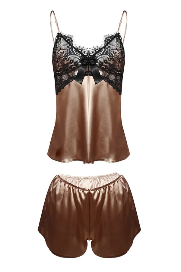 KOMPLET BEATRICE SATYNA JASNY BRĄZ kolor jasno brązowy, rozmiar XS