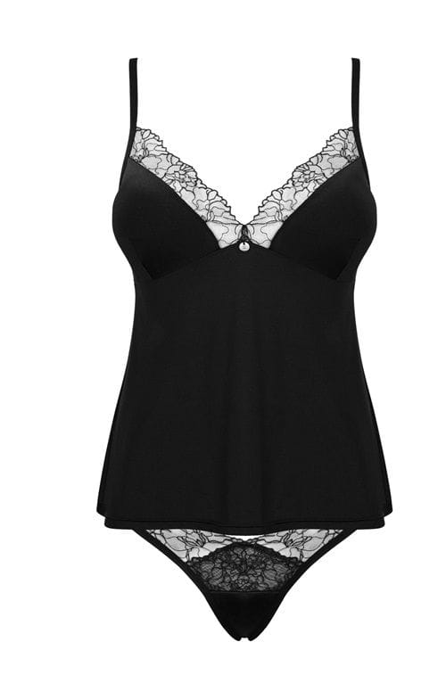 Komplet Bella Rou top + figi Czarny Rozmiar M/L