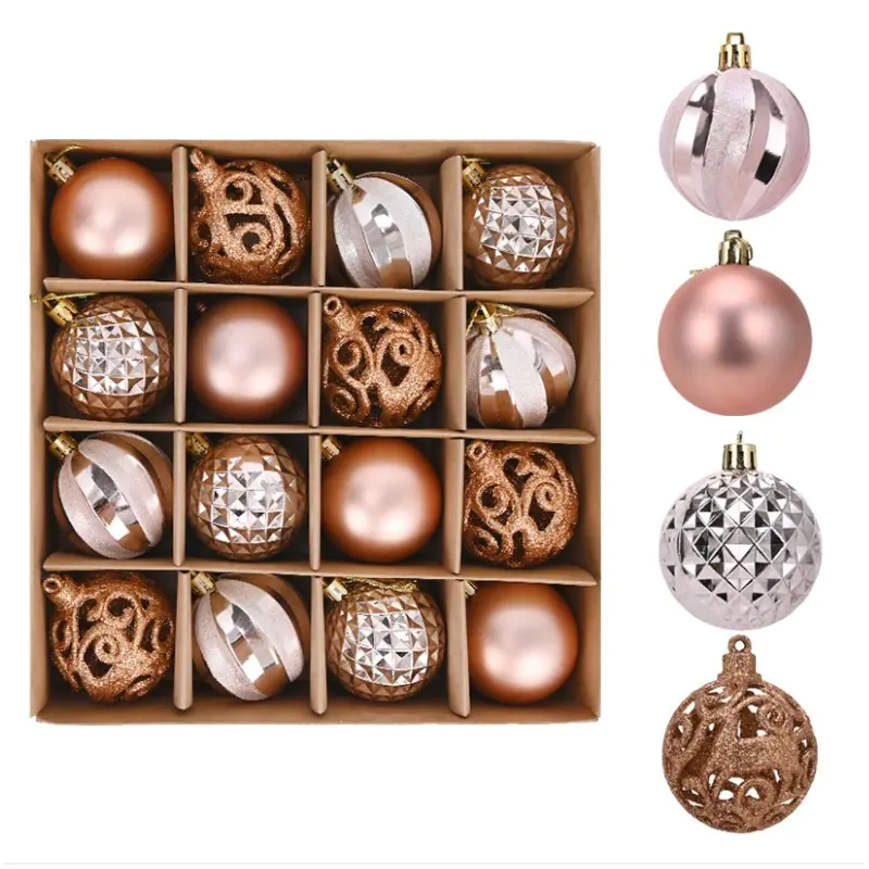 Komplet 16 sztuk bombek na choinkę Specyfikacja:- W pudełku zapakowane 16 szt- Średnica 6 cm - Wykonane z tworzywa sztucznego- Spakowane w pudełeczko