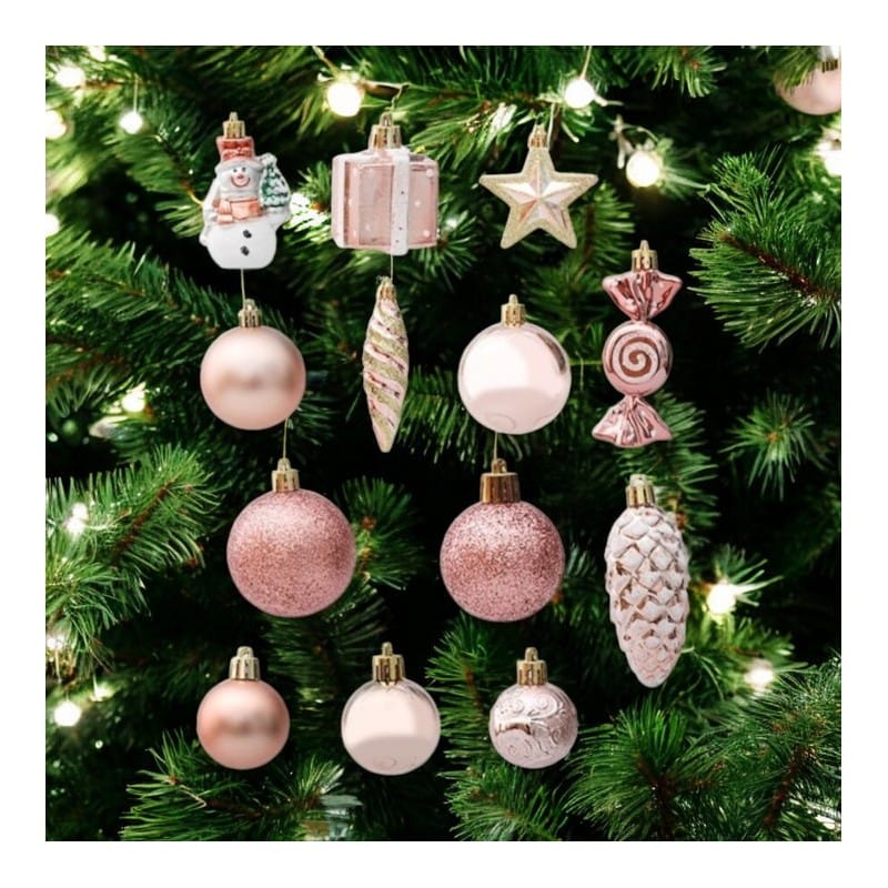 Komplet bombek 29 sztuk w opakowaniu różowe, bombki na choinkę BSN50