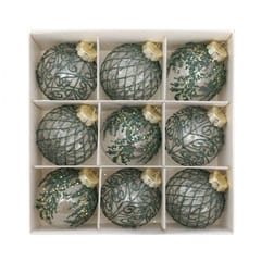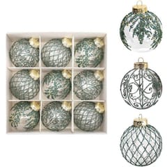 Komplet 9 sztuk bombek na choinkęDodaj swojemu wnętrzu odrobinę zimowej magii.Bombki nadają się jako ozdoba świąteczna do powieszenia na oknie, choince lub jako prezent, a nawet do dekoracji stroików! Specyfikacja: Zestaw 9 sztuk Średnica bombki: 8 cm Kolor: zielonyMateriał: tworzywo sztuczne Wymiary opakowania:24,5 x 24,5 x 8 cm Waga całego zestawu:340g bruttoPoczuj klimat Świąt!